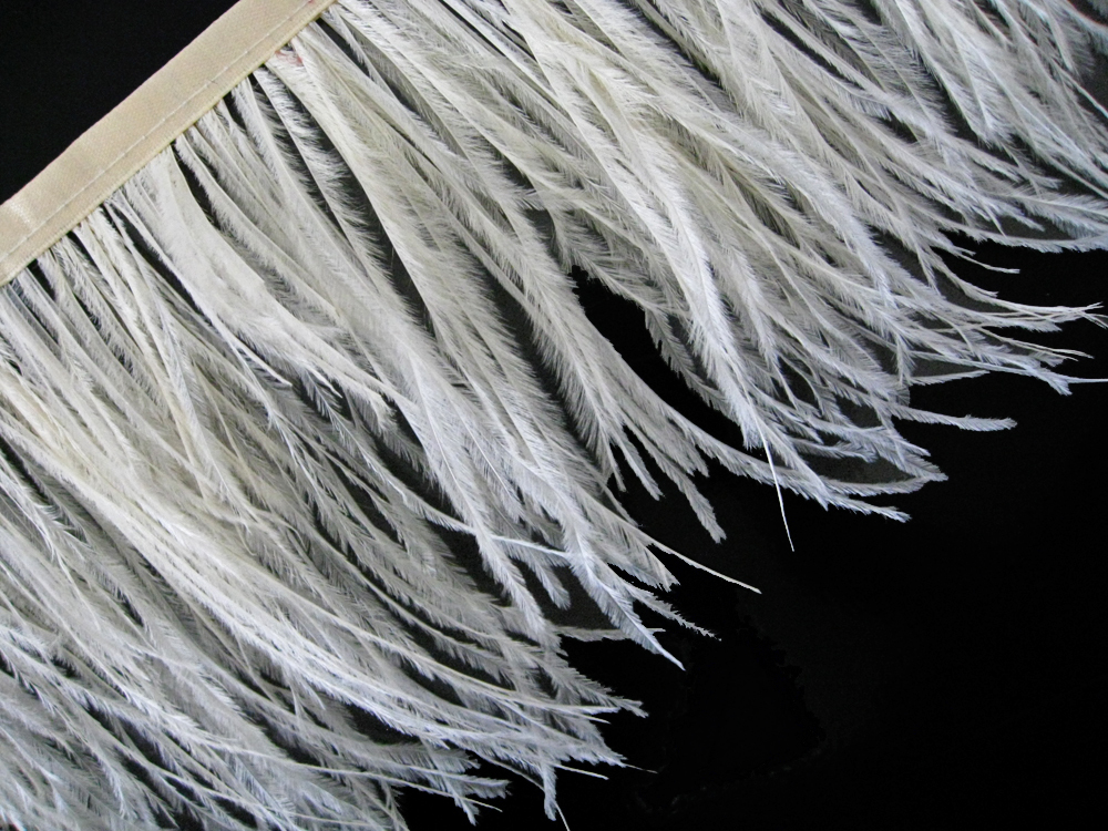 Solo plumas seleccionadas de Ostrich entre 11 y 12cm de largo. Fibras seleccionadas y cosidas en 1 tira de 35cm aproximadamente.